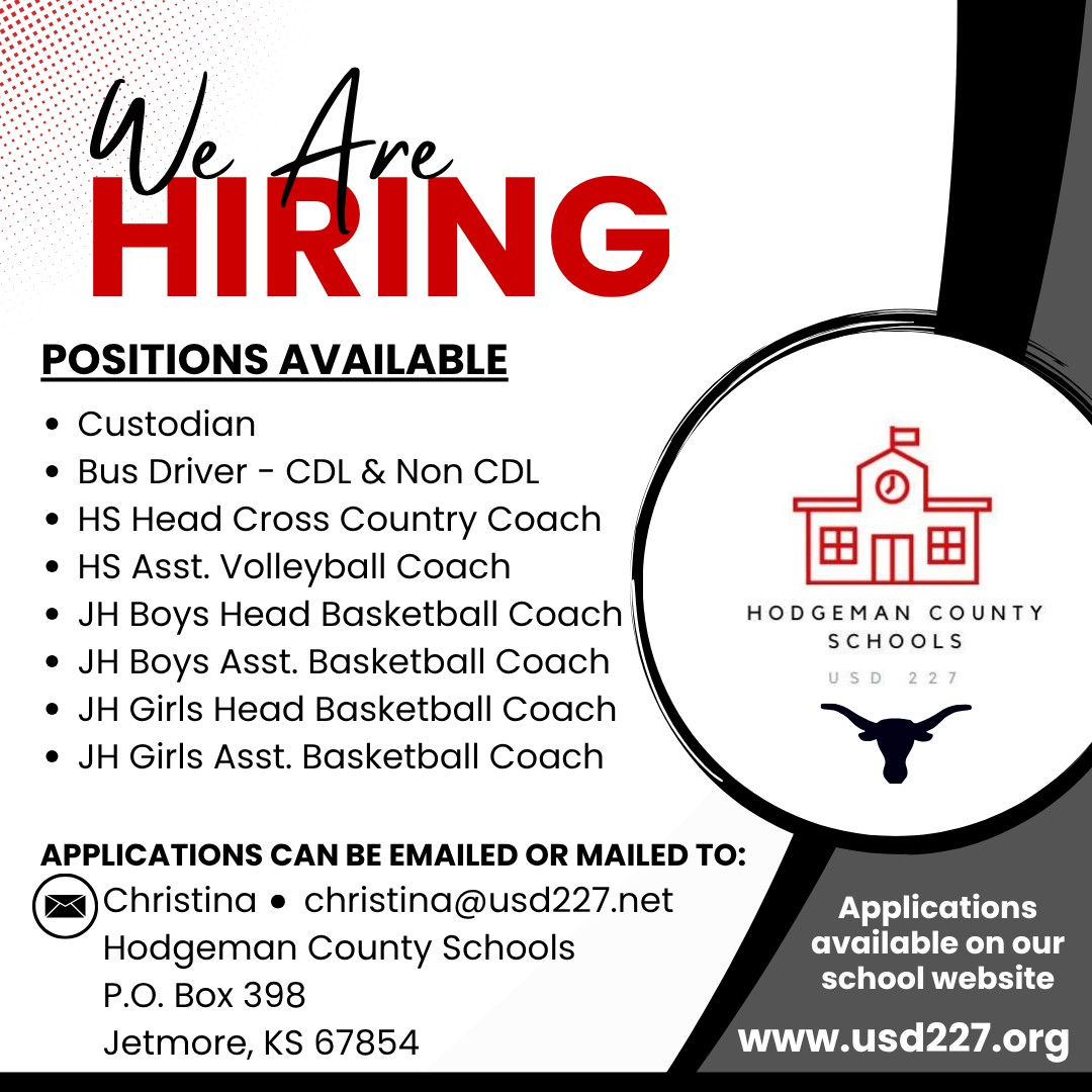 Applications can be emailed to christina@usd227.net
